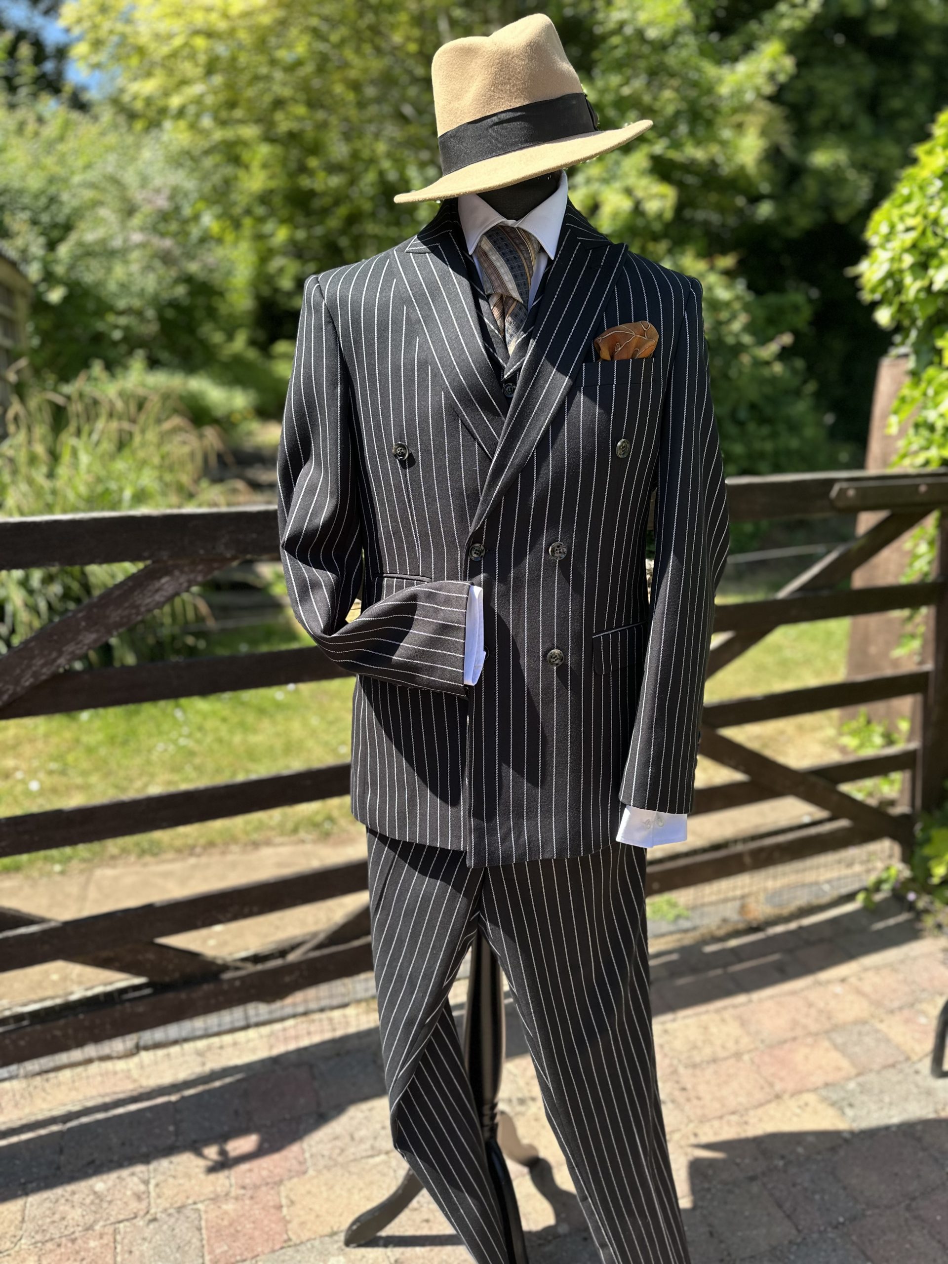 Gents Black & White 3 Piece Pinstripe Spiv Suit