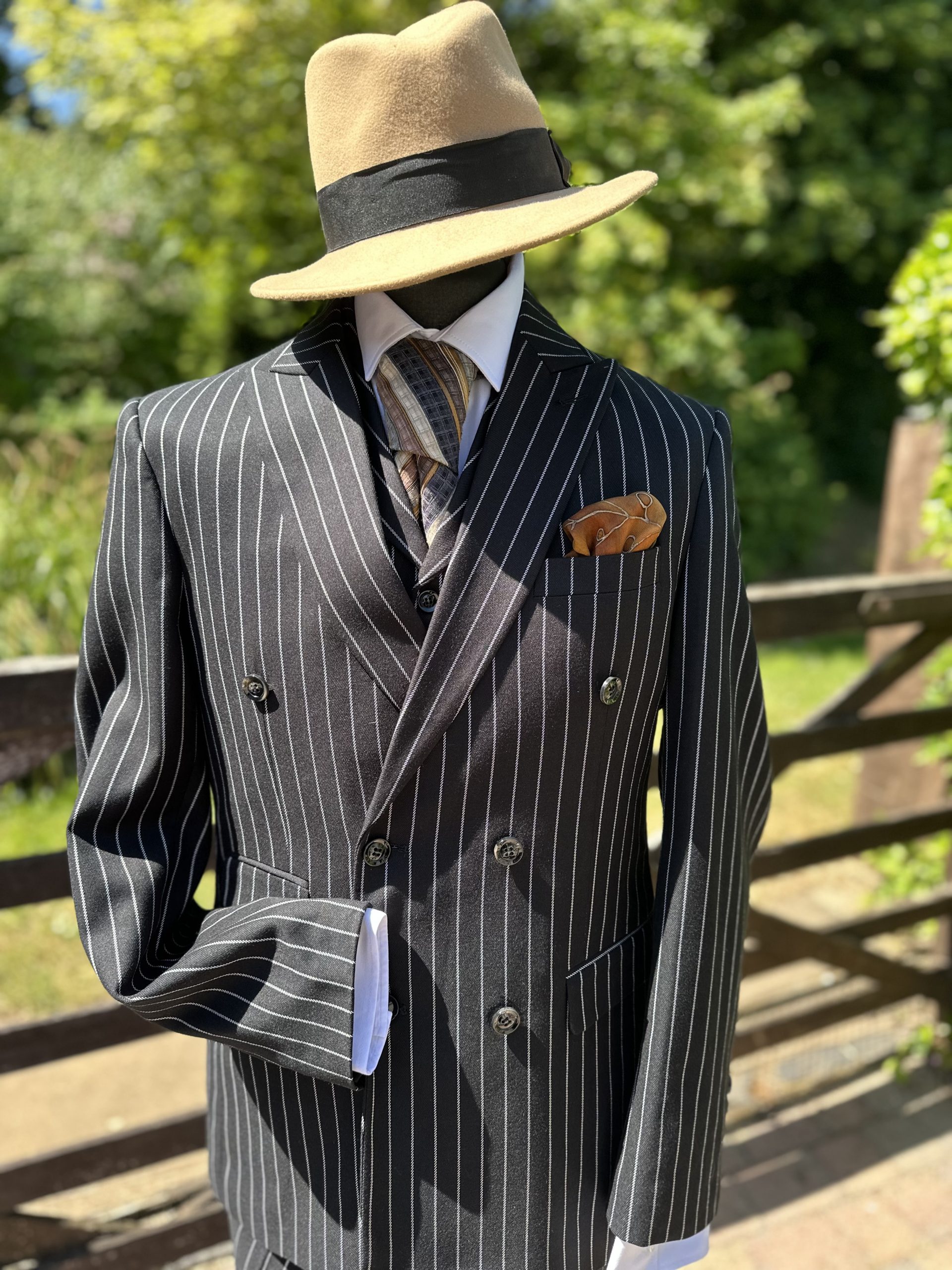 Gents Black & White 3 Piece Pinstripe Spiv Suit
