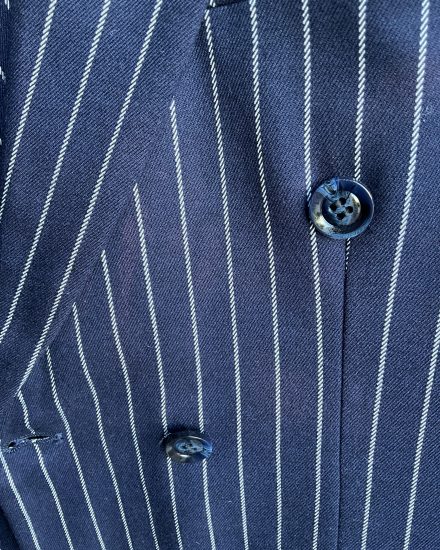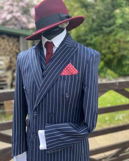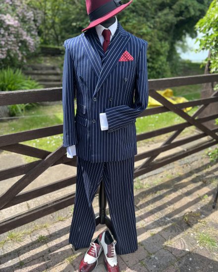 This Gents Blue / White pinstripe spiv suit is perfect foir any 20’s, 30’s or 40’s spiv !