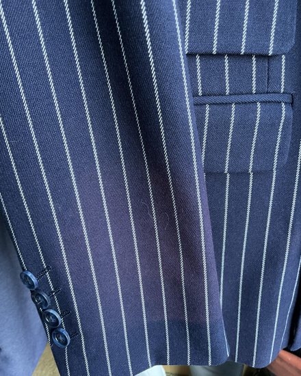 suit is perfect with exception of small area of colour discolouration mark on right sleeve and jacket chest { see images}