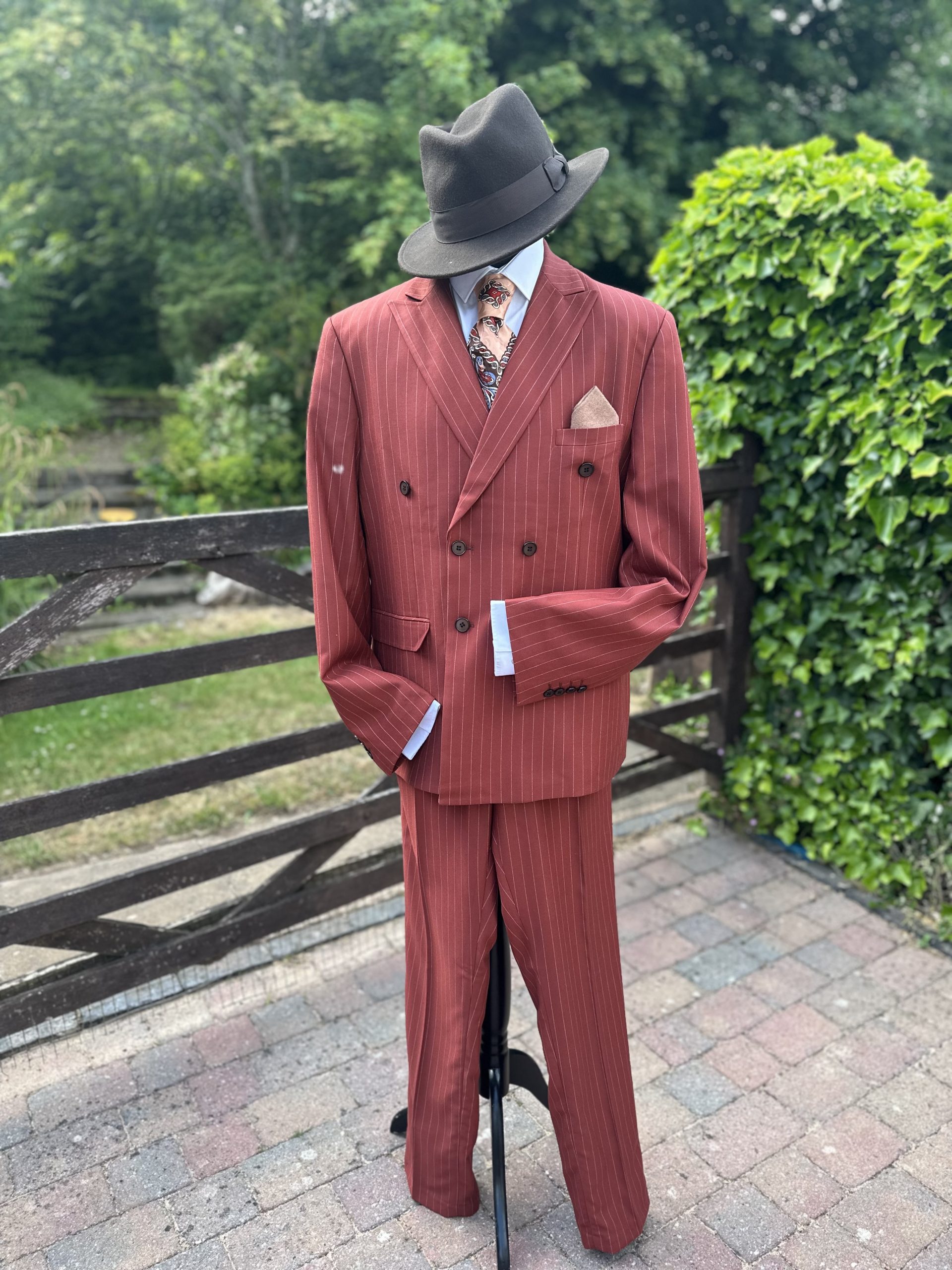 Gents Brick Red Pinstripe Spiv Suit