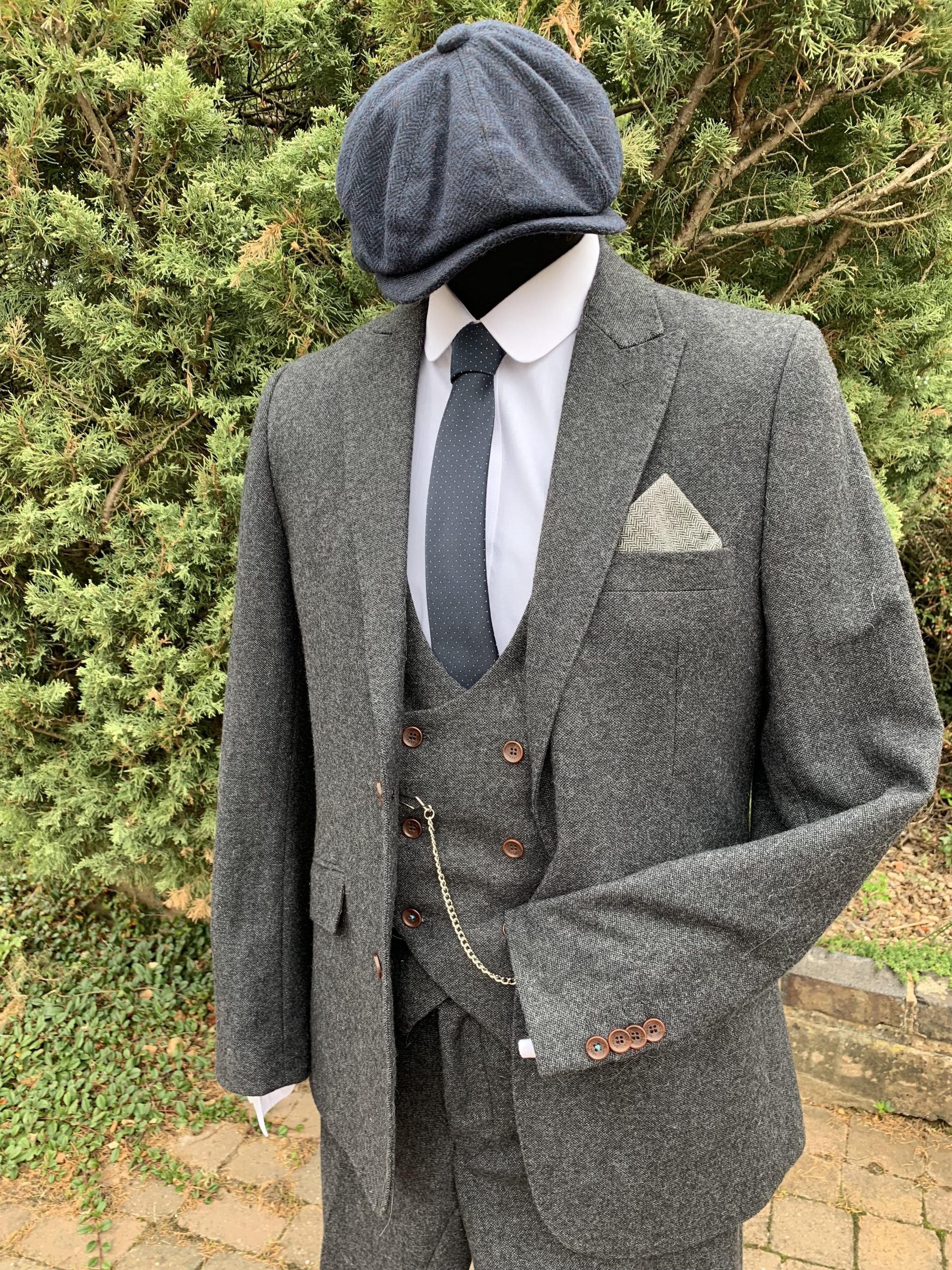 Gents Charcoal Grey Tweed Peaky Blinder Suit