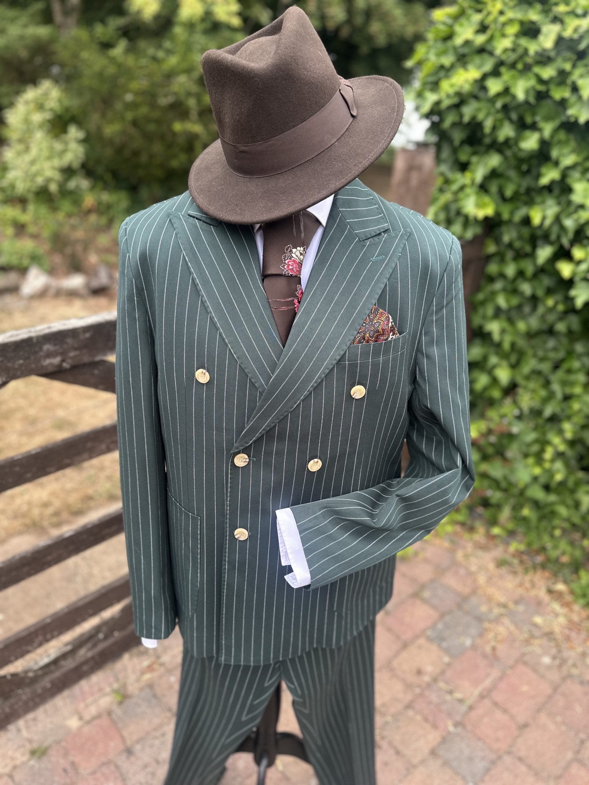 Gents Dark Green Pinstripe Spiv Suit
