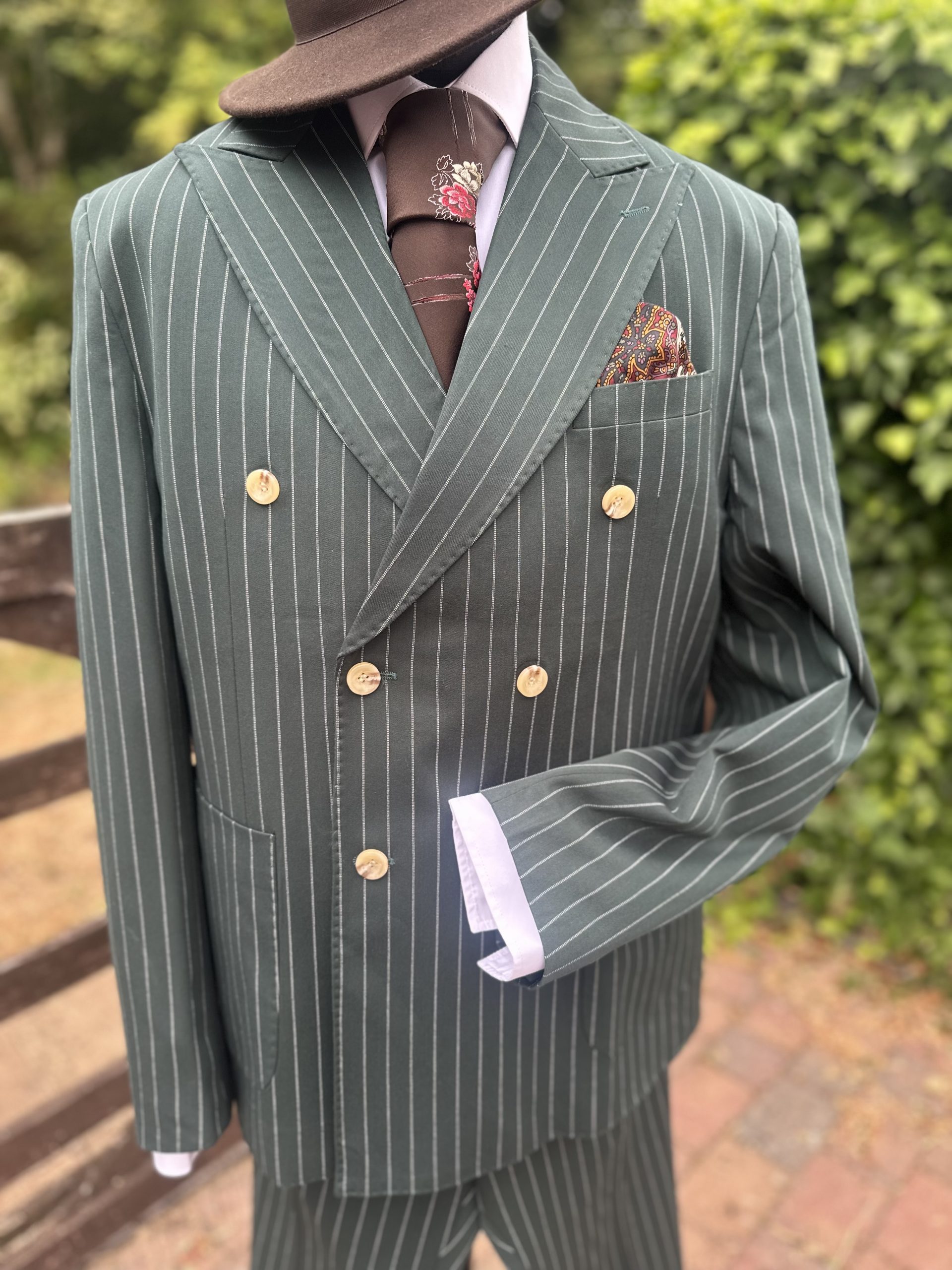 Gents Dark Green Pinstripe Spiv Suit