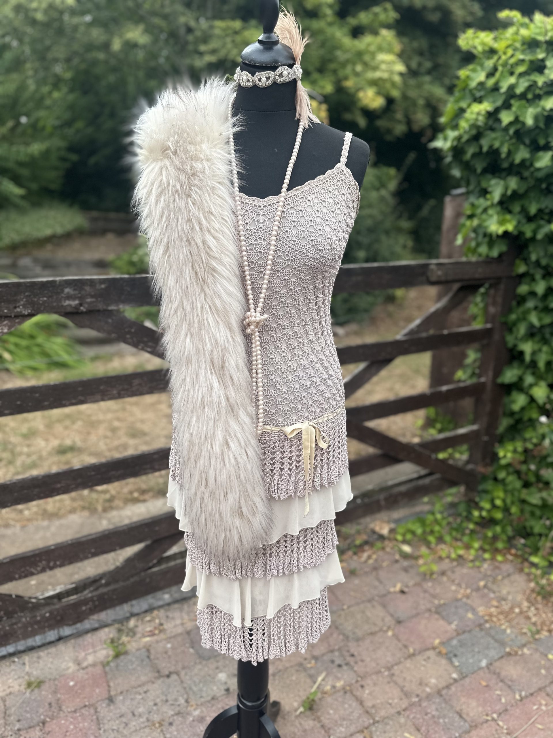 Ladies Beige Crochet 1920’s Dress