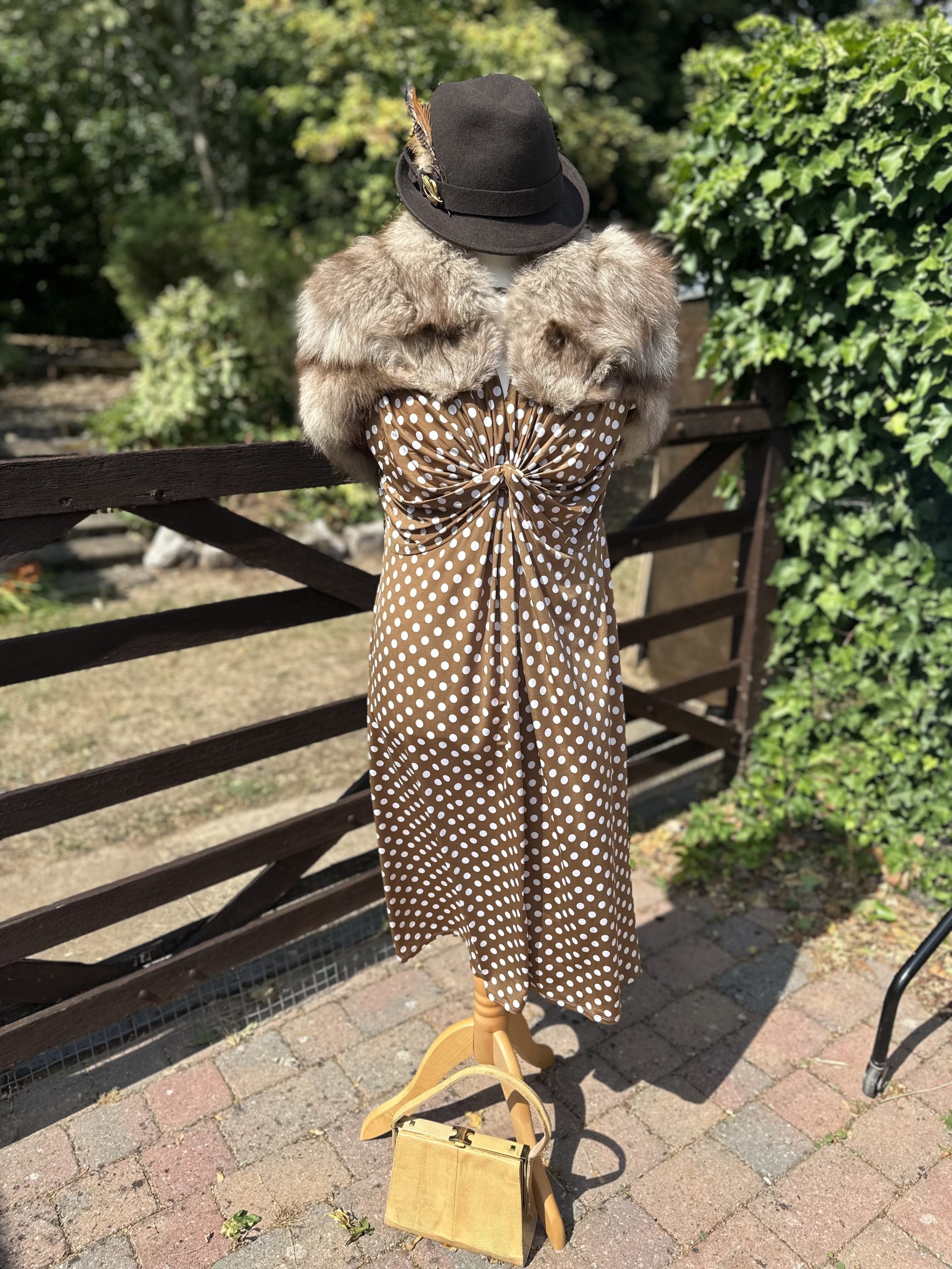 Ladies Buff & Cream Polka Dot 1940’s Dress
