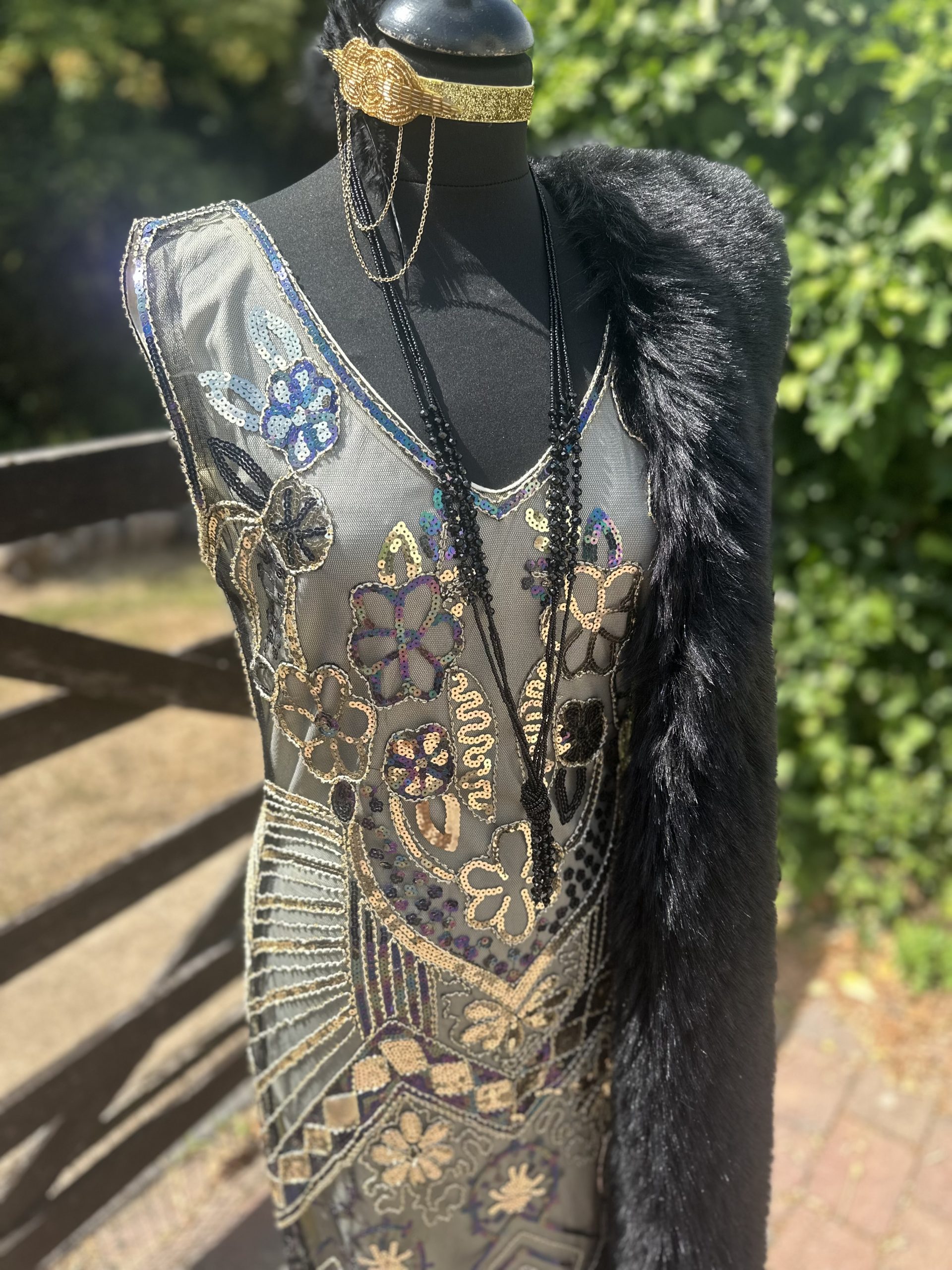 Ladies Ivory & Gold Sequin Fringed 1920’s Dress