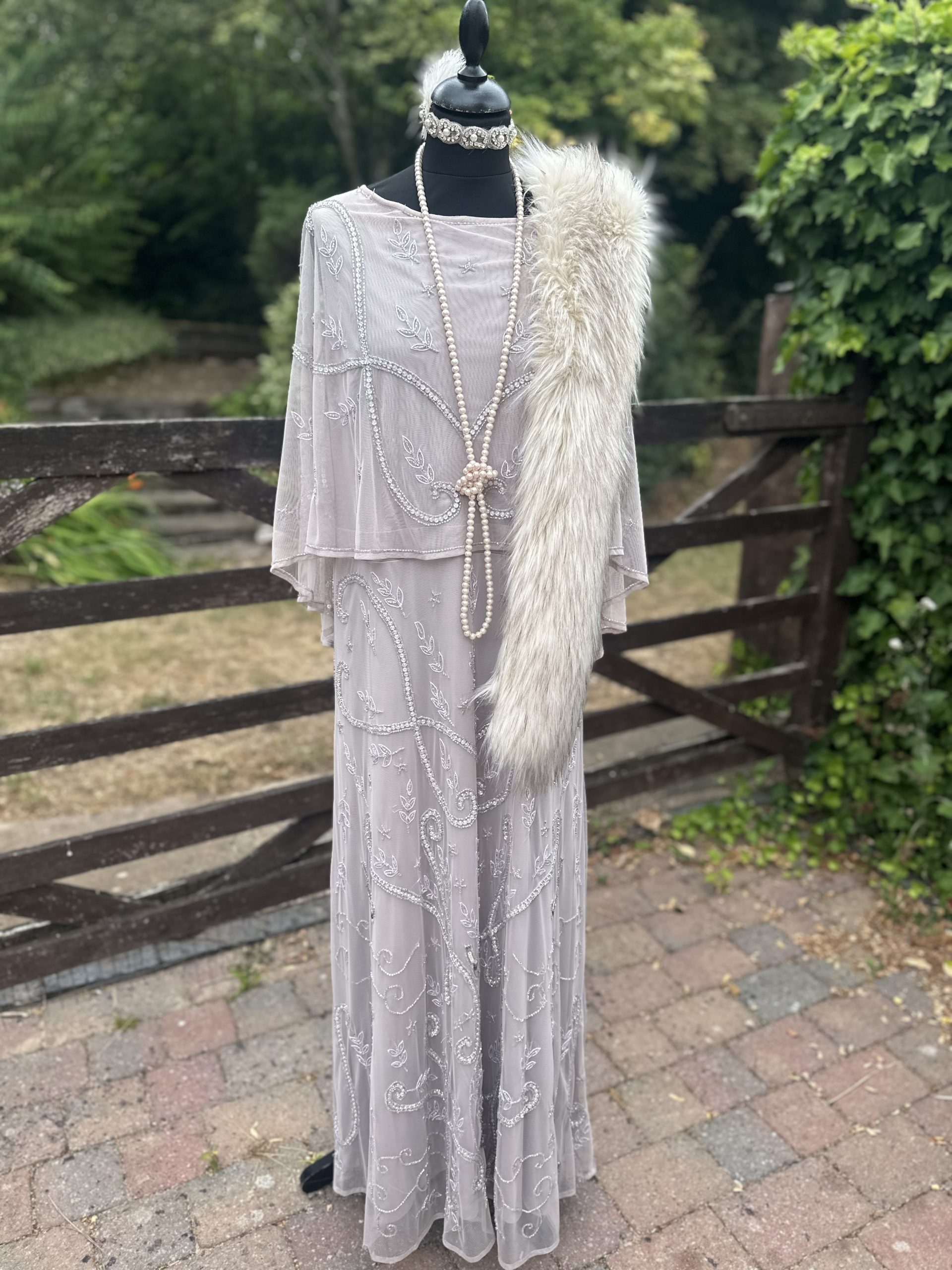 Ladies Mushroom & Diamante Long 1920’s Gown