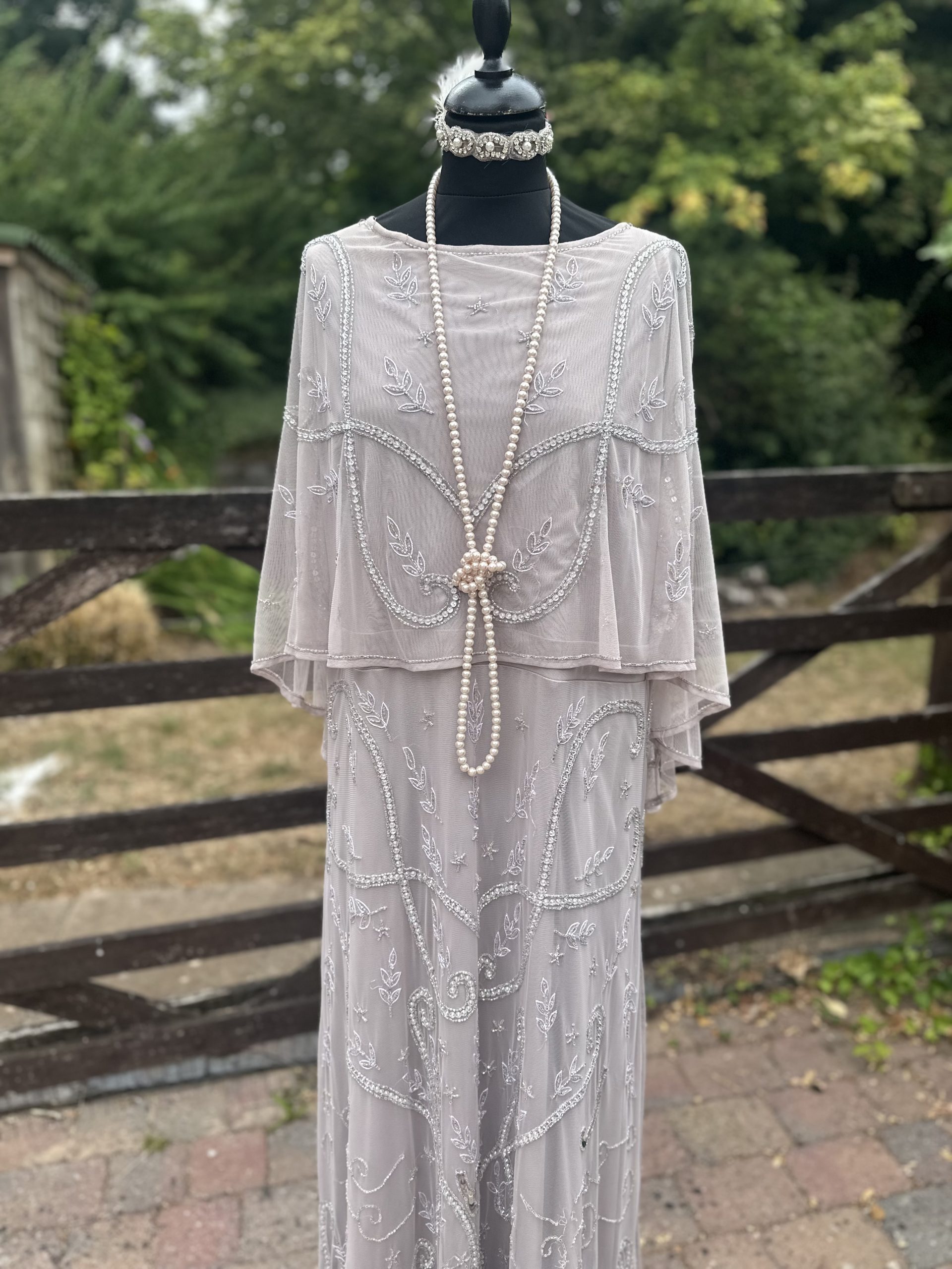 Ladies Mushroom & Diamante Long 1920’s Gown