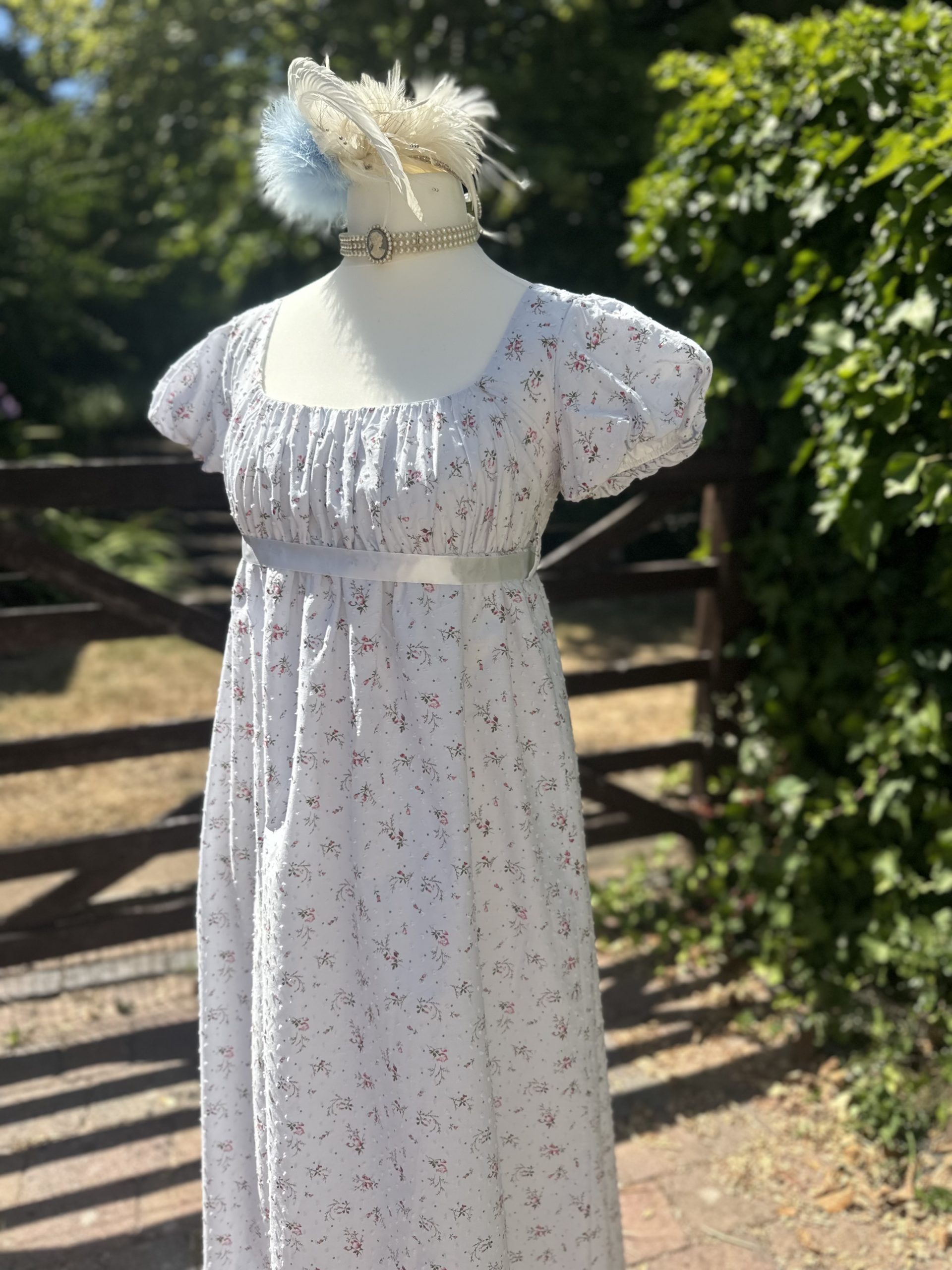 Ladies Pale Blue Ditsy Floral Regency Dress