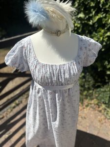 Ladies Pale Blue Ditsy Floral Regency Dress