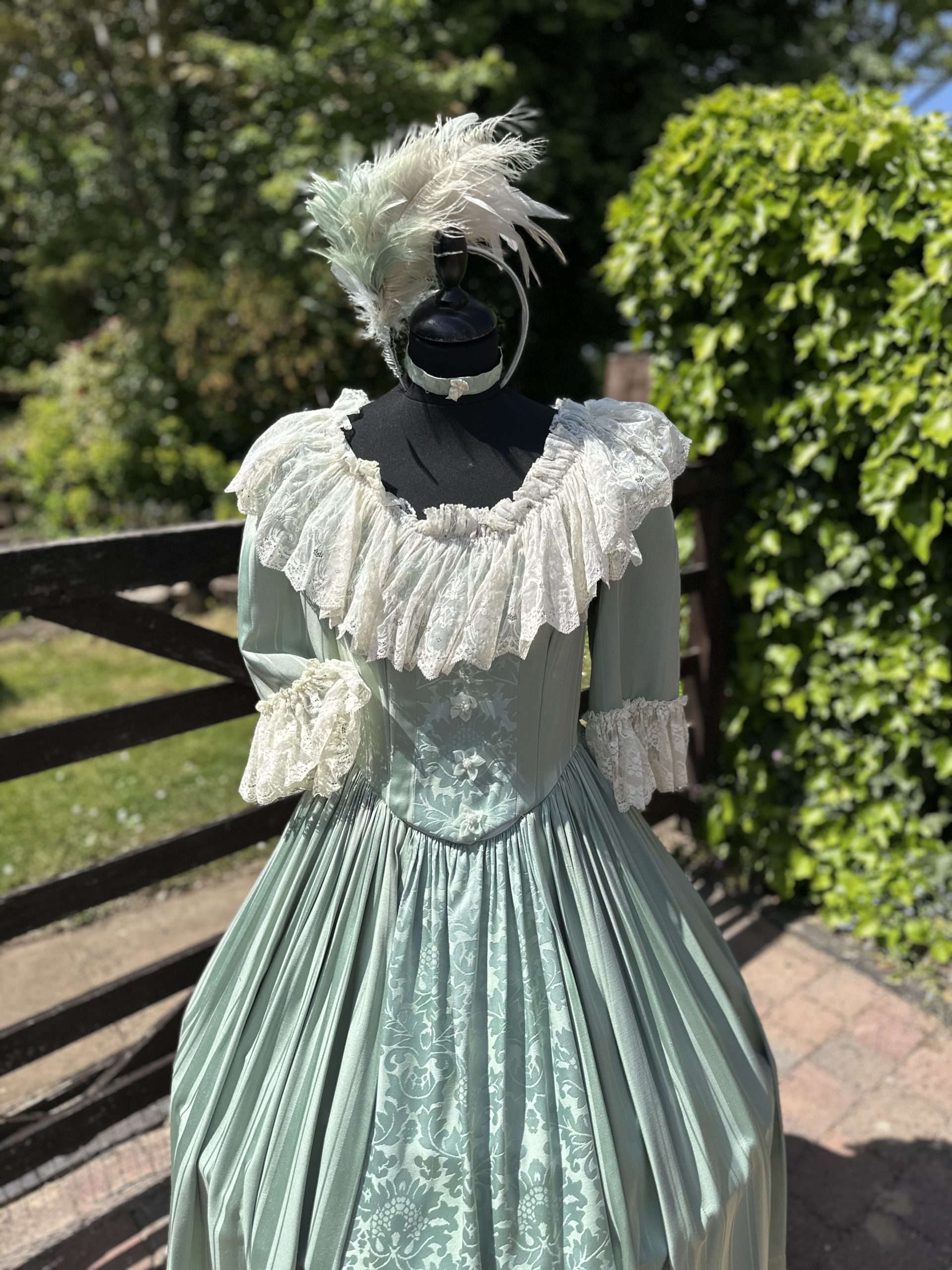 Ladies Pale Green & Cream Georgian Dress