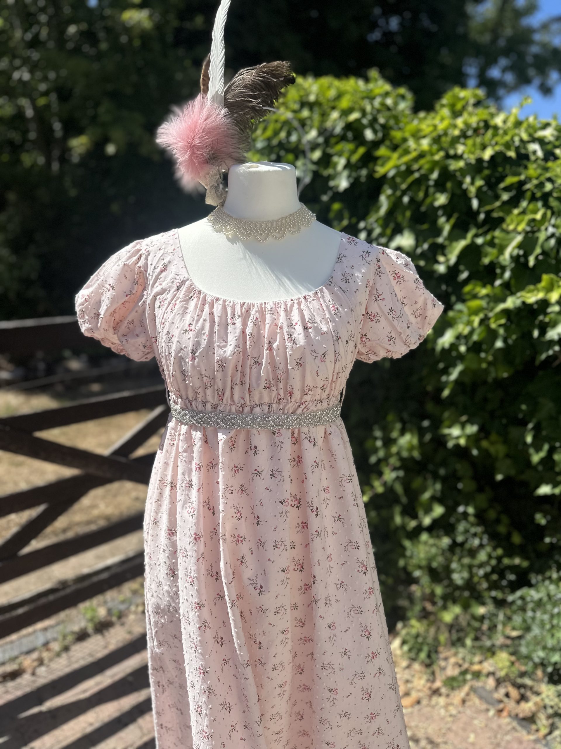 Ladies Pale Pink Ditsy Floral Regency Dress