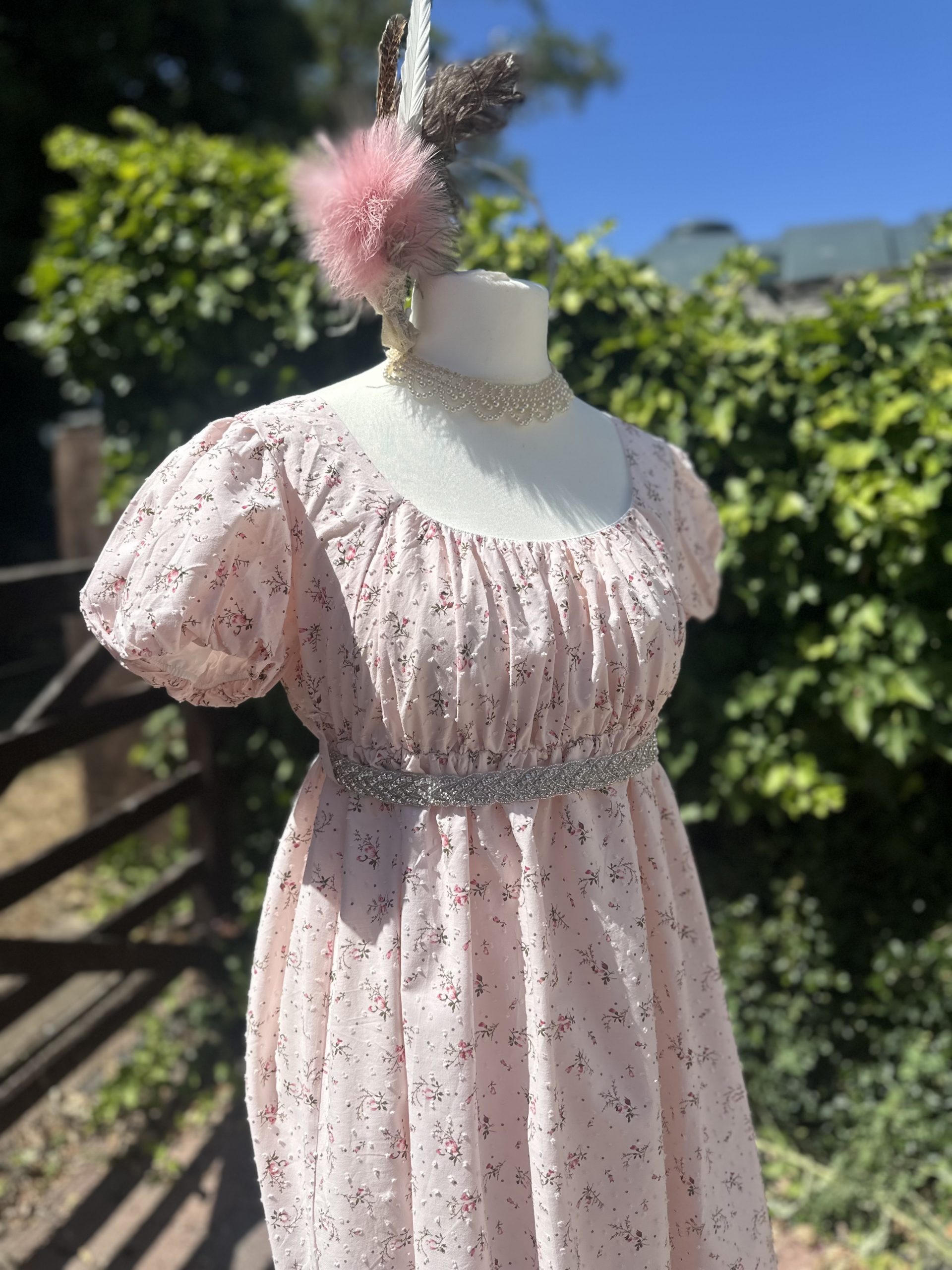 Ladies Pale Pink Ditsy Floral Regency Dress