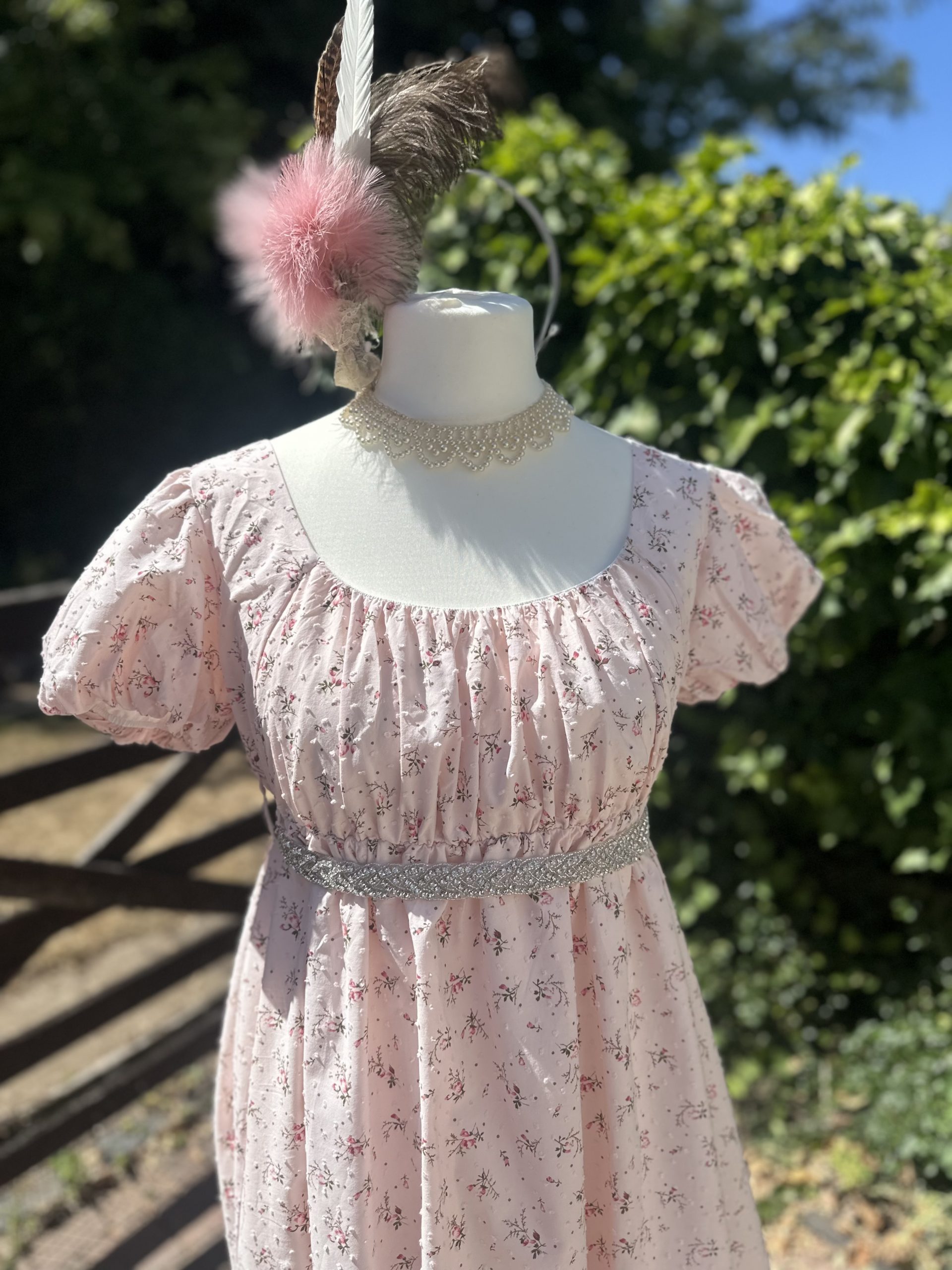 Ladies Pale Pink Ditsy Floral Regency Dress